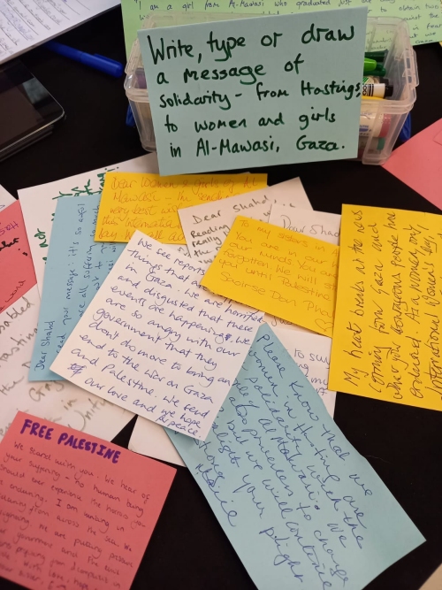 Dear women and girls of Gaza, Happy international women's day! Women and girls in Hastings are with you! Solidarity, hope and love!