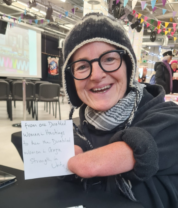 From one disabled woman in Hastings to all the disabled women in Gaza. Strength in unity. X