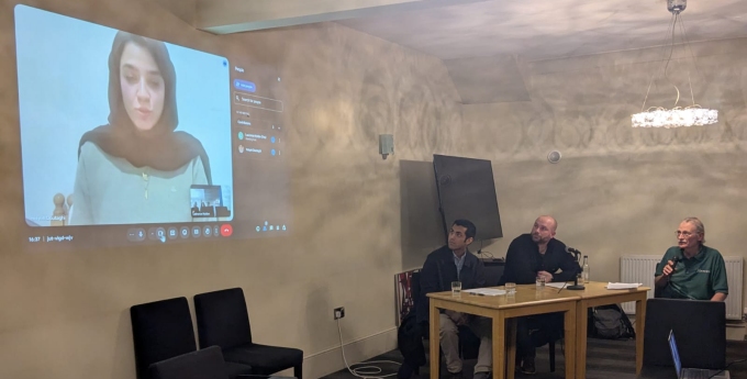Dr Helyeh Doutaghi, a scholar in International law, spoke from Tehran, having been fired from her post at Yale University and then deported from the US earlier this year on spurious grounds, as part of what she has called the 'era of Zionist McCarthyism.'