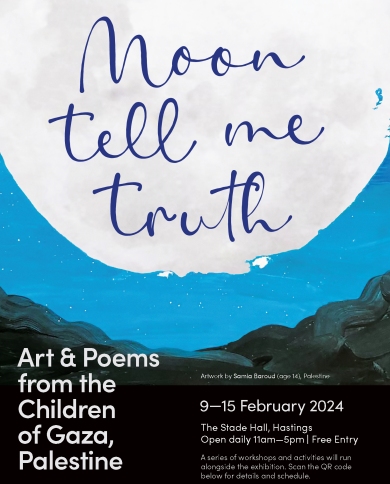 Alongside the exhibition we are running a series of workshops and activities as well as a poetry/art competition for young visitors; along with a Candlelit Vigil for the Children of Gaza Tuesday 13 February 7pm. Details can be seen here and on our Facebook Event Page.