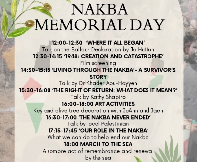 We are looking forward to seeing many of you at our Nakba Memorial Day tomorrow which has a packed programme of film, talks and activities - including first hand testimonies from a 1948 Nakba survivor and a 2024 Nakba survivor.