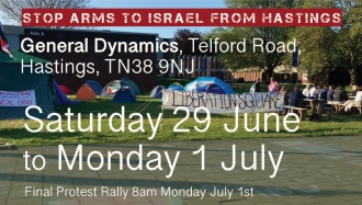 PEACE CAMP AT THE HASTINGS GENERAL DYNAMICS ARMS FACTORY SATURDAY 29 JUNE - MONDAY 1 JULY