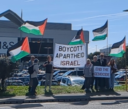 Boycott played an important part in ending apartheid in South Africa and now it's playing a part in ending apartheid in Israel. On Saturday we spent the morning talking with shoppers at the Ravenside Retail Park. We delivered this message: Check the label - if it says Israel, put it back. We found in the shops Israeli potatoes, mangoes and Sabra humus. We gave out hundreds of leaflets and had a great response from members of the public - people are really appalled at Israel's policies of apartheid and genocide - and want to do something about it. Short video on Facebook and on Instagram.