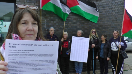 We had planned for a delegation to meet with MP Dollimore. This was after she published two statements calling for the increase in armaments funding, and for cuts to disabled people. We published an open letter signed by local groups representing more than a thousand people and 165 constituents including local councillors. First she refused, then she agreed, then she refused again!