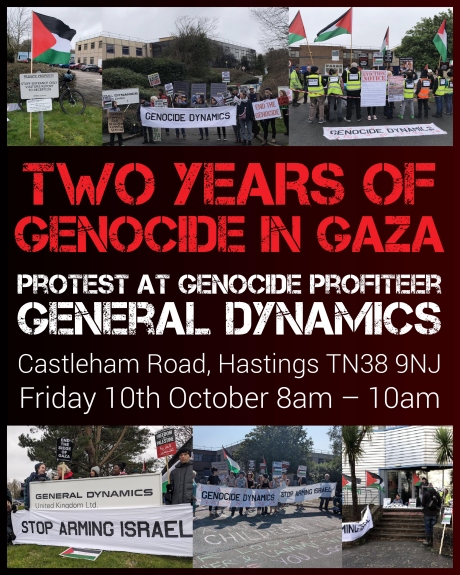 The are two General Dynamics factories in Hastings.They provide avionic systems for fighter planes and tactical communications equipment for ground vehicles. These components are a vital part of the Israeli military machine. The site at Castleham Road is leased to General Dynamics by Hastings Borough Council. Clearly this has to stop.