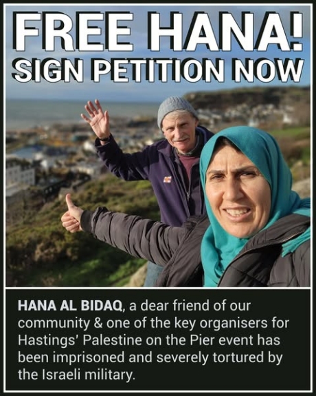 Our dear friend and organiser Hana Al Bidaq has been in Israeli jail for a month where she has been tortured by the occupation. Sign our petition to MP Helena Dollimore to make urgent representations to the Foreign office for her immediate release: Sign here. The background: Facebook and Instagram.
