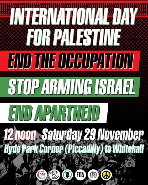 Tomorrow Saturday 29 November - Demonstration for Palestine in London
