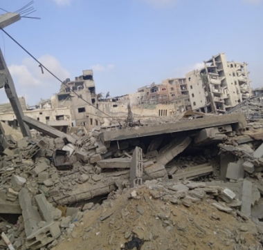 The Committee members have increasingly been working with foreign aid agencies. Whenever we receive reports, they always send messages such as "Thank you friends for helping us give hope and aid to thosewho need it" We are always thinking of ways to raise both awareness and funds, and of course donations are always welcome at our stalls and meetings or online through Paypal and to our bank:Link here. Images we have been sent of the distribution of blankets, food and below the result of bombing in nearby Khan Yunis.
