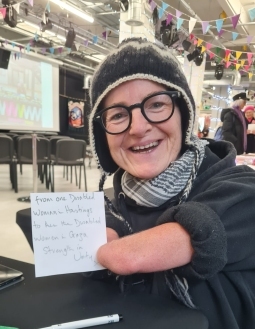 At last week's Women's Voice IWD festival in Hastings we had a great response to the message from a friend of ours in Gaza 'living without a home, under a piece of cloth (a tent) in the streets of Al-Mawasi, where there are no bathrooms except for a corner between the tents.' We've published the messages of solidarity that we've forewarded to women and girls in Al-Mawasi.